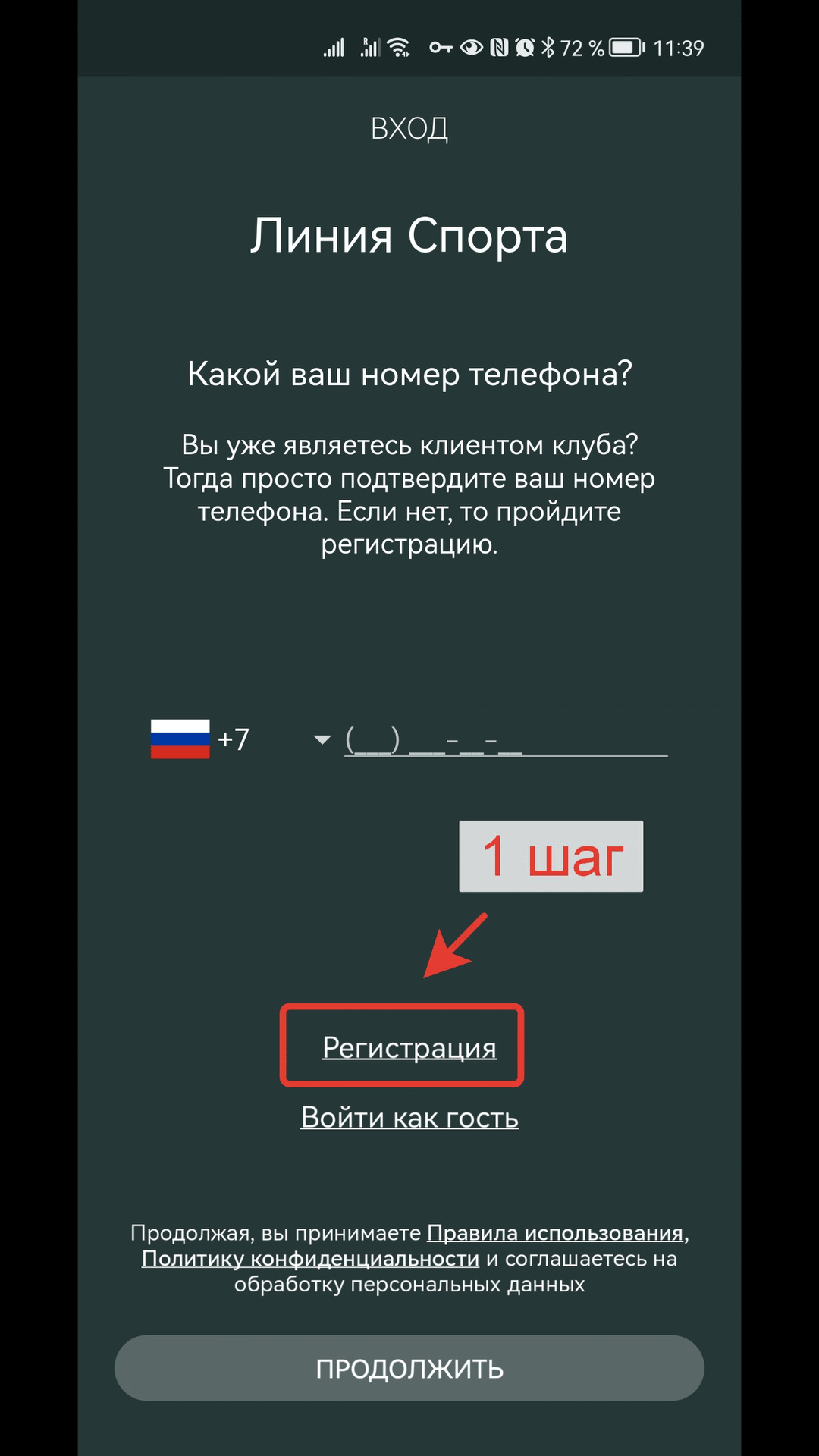 1. Откройте приложение «Линия спорта».
